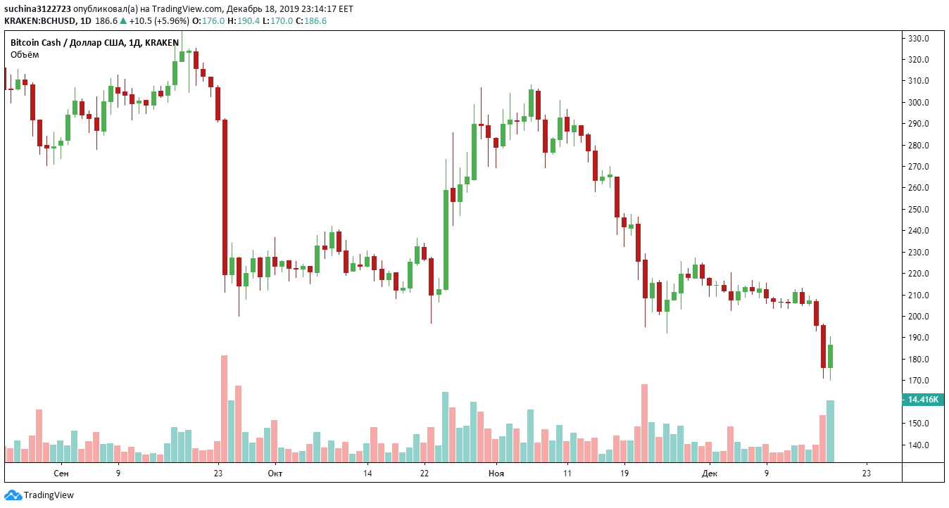 BCH пытался оставаться выше цены $200, но все же за последние дни его цена снизилась примерно на 10%, пробив уровень $185.