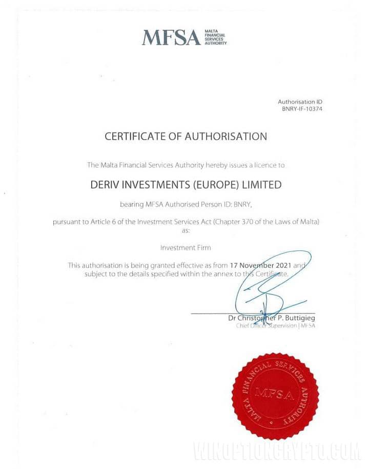 Deriv broker conducts in Europe with a license granted by the Malta Financial Services Authority. Outside the European Union, the company relies on licenses from jurisdictions such as Labuan (LFSA), the British Virgin Islands (BVI), and Vanuatu (VFSC).