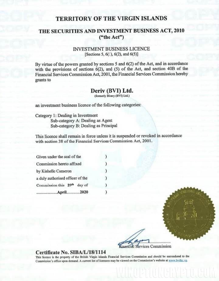 Deriv (BVI) Limited (company number 1841206) completed its registration in the British Virgin Islands on September 15, 2014. The legal address is Kingston Chambers, P.O. Box 173, Road Town, Tortola, British Virgin Islands.