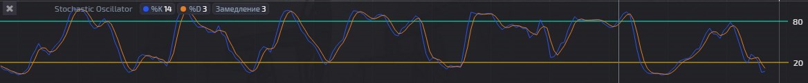 Two horizontal lines with values of 0 and 20 show the so-called oversold zone. If the Stochastic signal lines fall below the specified value, this indicates that there is an overabundance of sellers (or open transactions for the sale of a certain asset) in the market. The overbought zone is formed by two other lines with values of 80 and 100. Stochastic moving averages falling into this interval indicates for an oversupply of buyers.