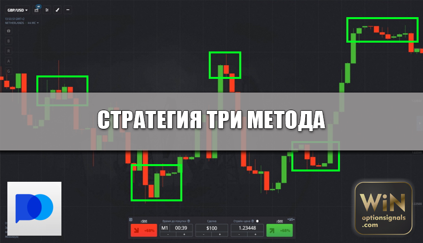 Trading on Pocket Option with binary options within the framework of this strategy is carried out provided that at least three small candles are formed in a row on the price chart. In this case, the signal for traders is a new candle that is larger and opens in the same direction in which the trend is moving.