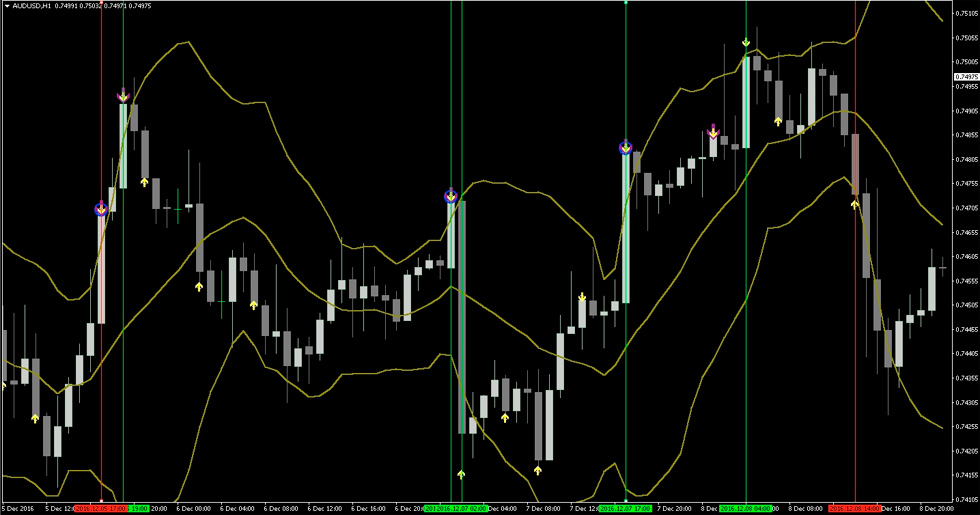 - проверяем график: сигнальная свеча должна выйти за пределы Bollinger Bands;