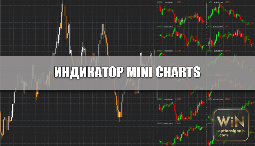 Индикатор для бинарных опционов Mini Charts является информационным и показывает на основном графике мини-графики других тайм фреймов этого же инструмента или любого другого. Данный индикатор полезно использовать, чтобы следить за общим трендом на одном инструменте или видеть сразу несколько разных торговых активов из разных отраслей.