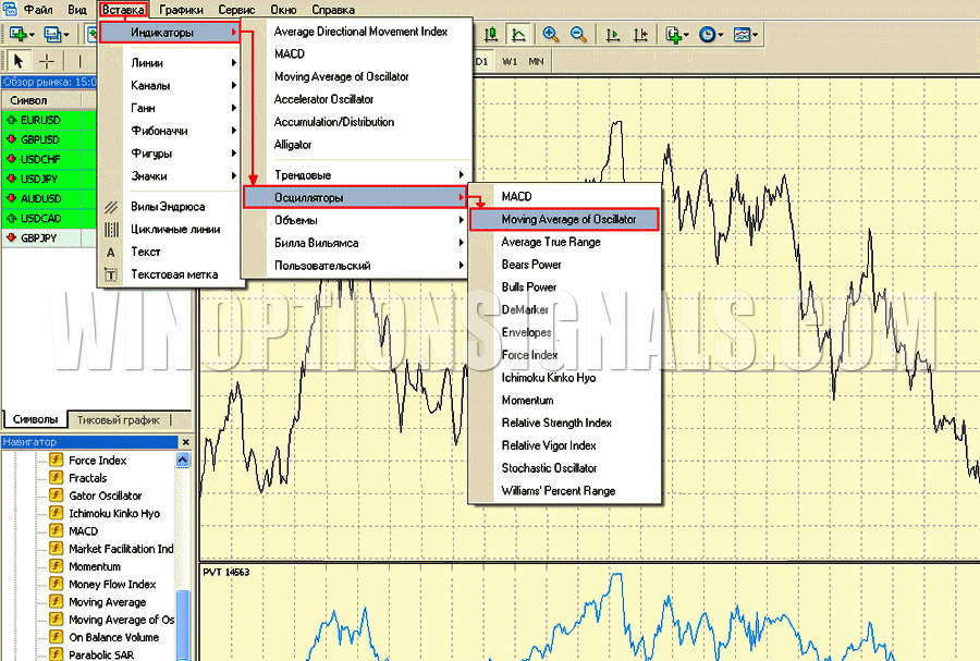 Одной из главных целей создателей OsMA было избавить осциллятор от главного недостатка MACD – запаздывания сигналов. Предполагалось, что такой подход позволит повысить точность технического анализа. Эксперимент оказался весьма успешным. Сегодня индикатор OsMA является базовым в любом современном торговом терминале. Например, в МТ4 он расположен в пункте «Вставка-Индикаторы-Осцилляторы». Это избавляет трейдеров от необходимости искать этот инструмент на просторах интернета. Он всегда будет под рукой.