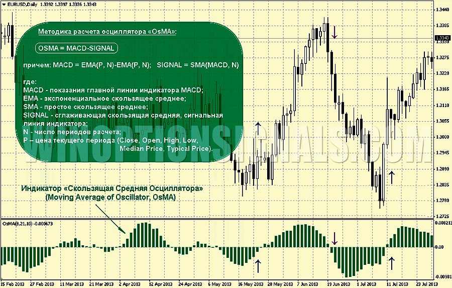 С помощью OsMA вовремя указывает на зарождение тренда и позволяет войти в рынок на этапе его формирования. Как раз это и нужно использовать для получения максимальной прибыли по сделке.