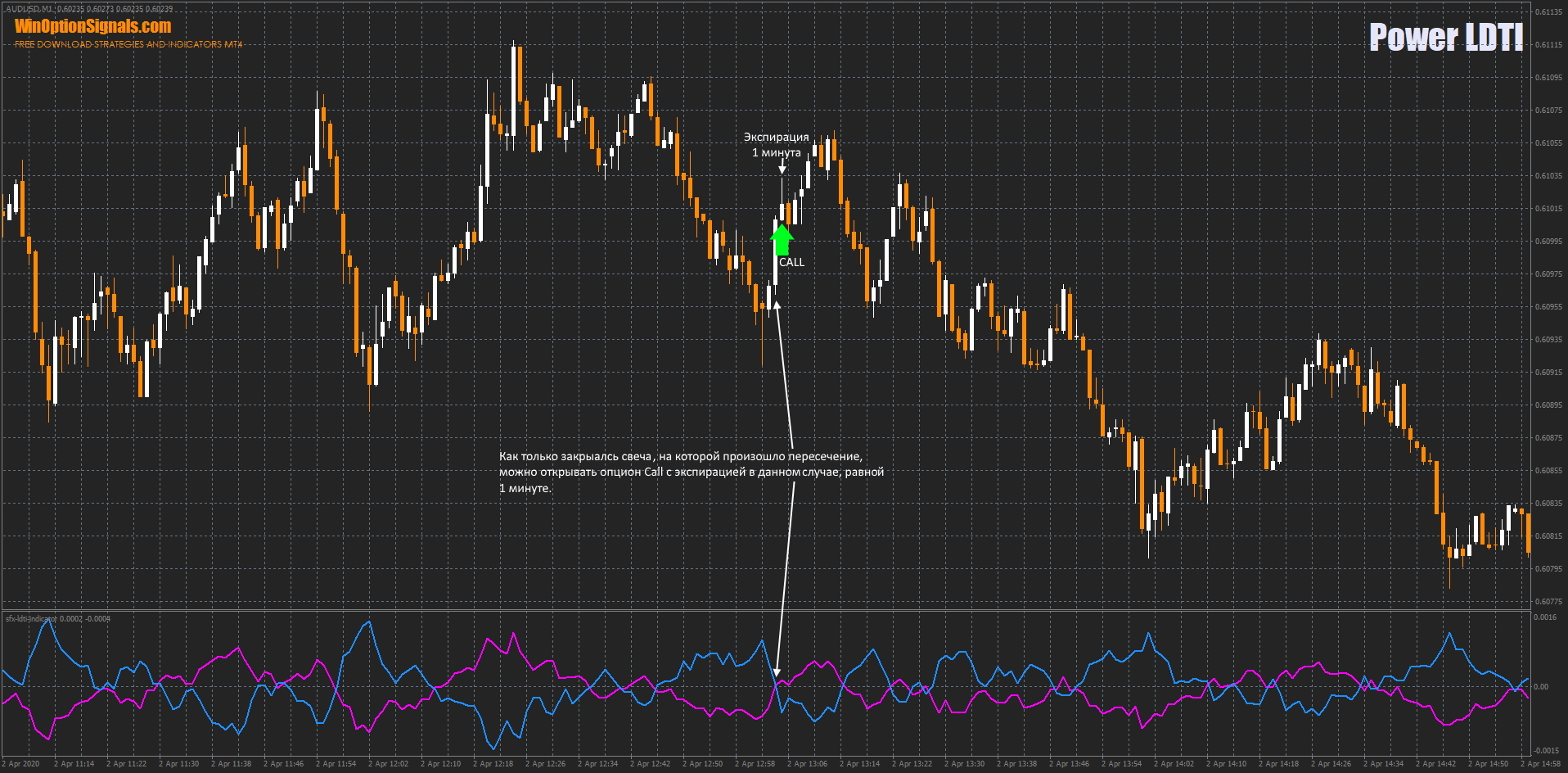 Индикатор для бинарных опционов Power LDTI является перекрестным индикатором, включающим в себя два разных показателя. Использовать данный индикатор можно как на малых тайм фреймах, так и на крупных. Такой индикатор подойдет новичкам, так как правило для открытия сделки с помощью данного индикатора всего одно, но эффективность при этом на довольно высоком уровне.