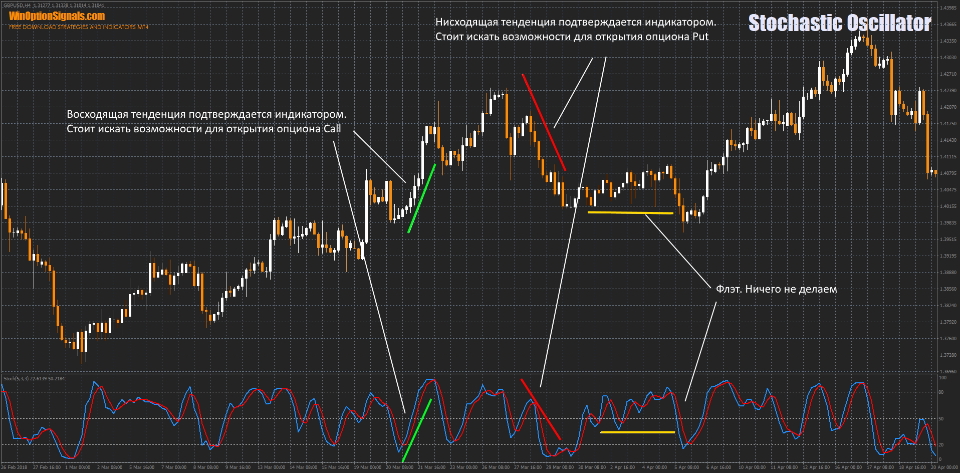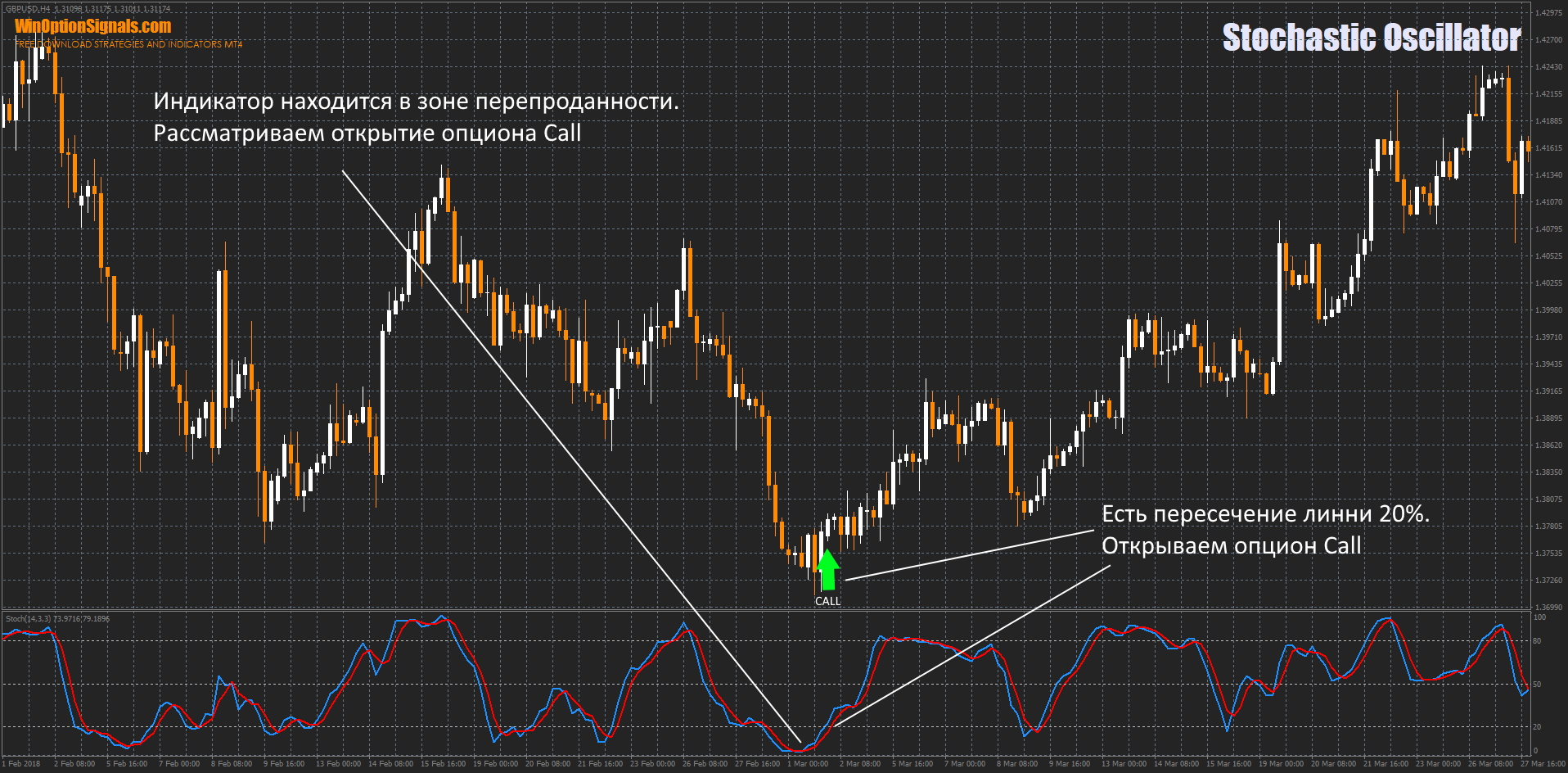 - Индикатор: Stochastic Oscillator.