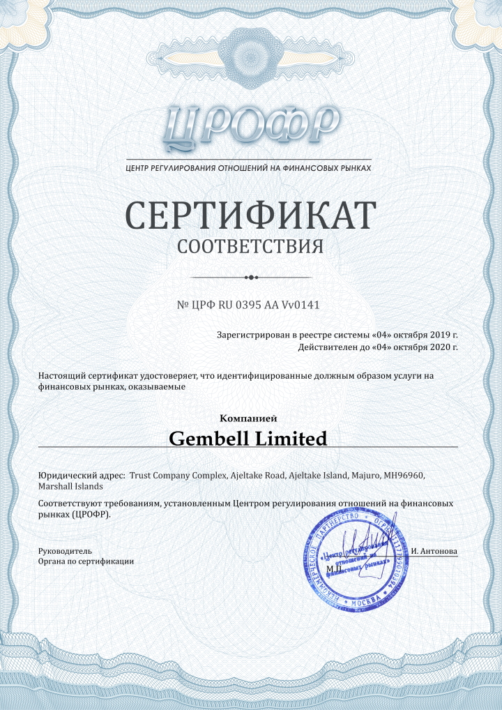Данный регулятор выдает лицензии не только брокерам бинарных опционов, а и Форекс-брокерам. Каждому лицензированному брокеру выдается сертификат, который подтверждает выполнение обязательств перед трейдерами. Компании, которые не соответствуют требованиям регулятора не могут получить сертификат, так как решение Центр Регулирования принимает после тщательной проверки брокера.