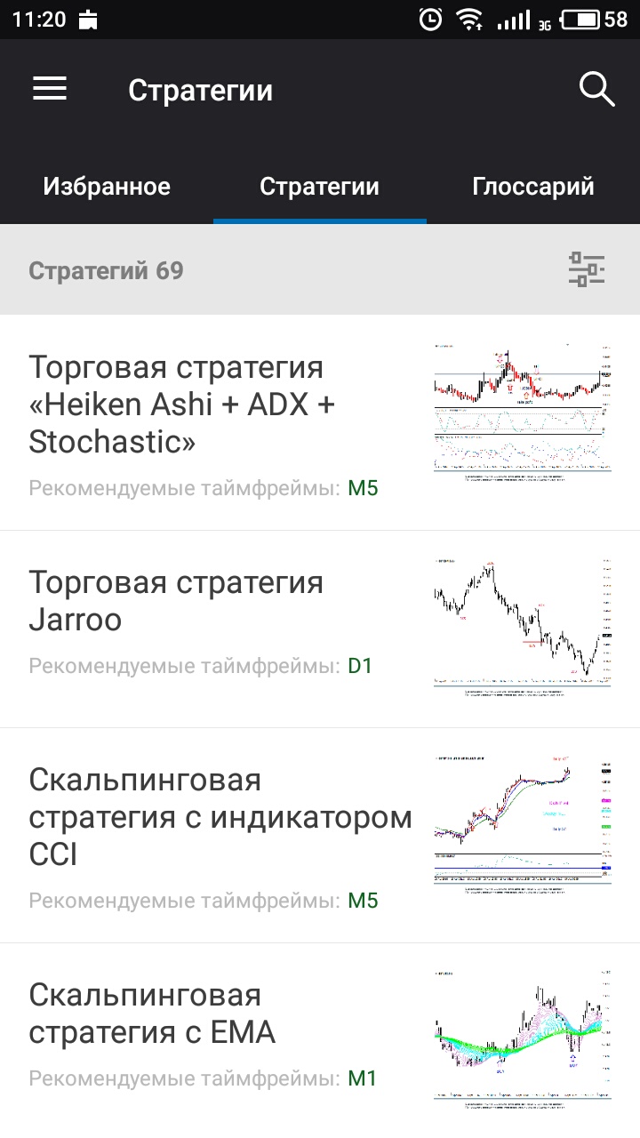 И это далеко не полный перечень доступных инструментов. Например, приложение «Сигналы» формирует торговые сигналы по валютным парам, а приложение «Торговые стратегии» предлагает своим пользователям более 70 стратегий, каждую из которых можно применять для разных таймфреймов и стилей трейдинга.