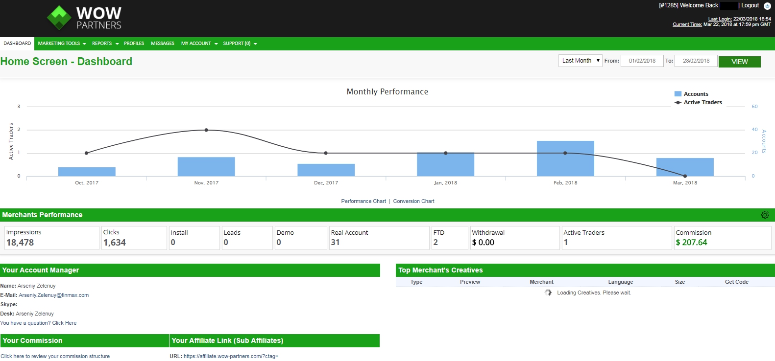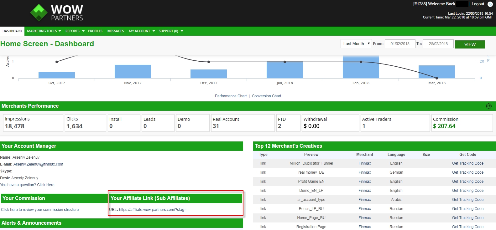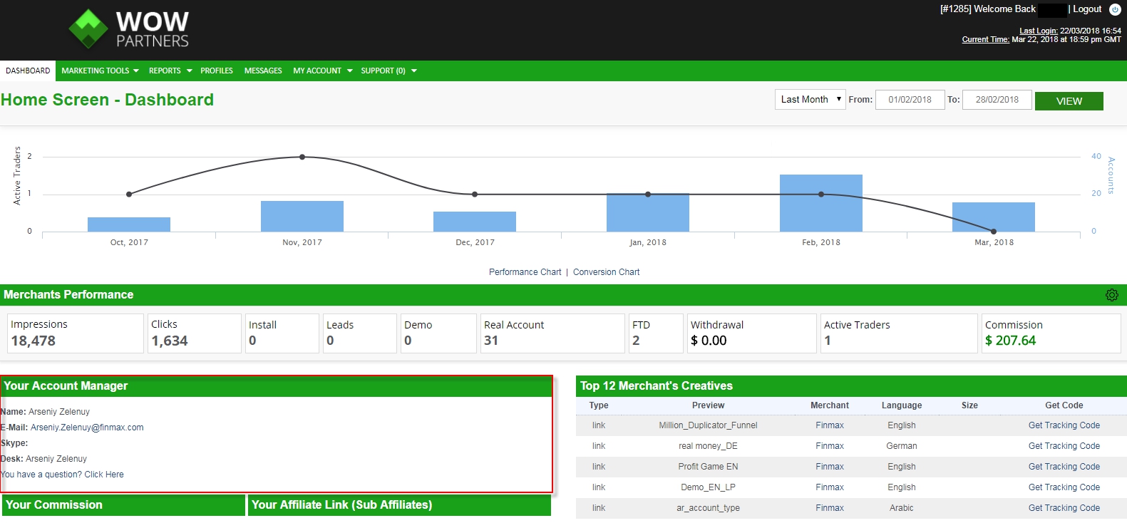 Несмотря на то, что партнерка брокера FiNMAX на английском языке, менеджер, который привязывается к каждому партнеру, будет русскоговорящим.