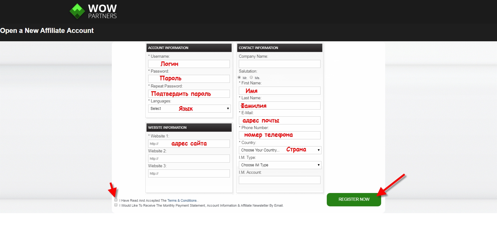 После заполнения всех необходимых данных нужно подтвердить, что соглашение было прочитано и нажать на кнопку «Register now»: