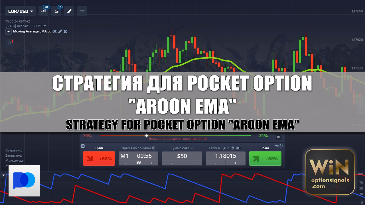Стратегия Aroon EMA является очень простой и будет понятна даже новичкам, а главное то, что ее можно использовать на платформе брокера PocketOption, так как все необходимые индикаторы теперь есть и там.
