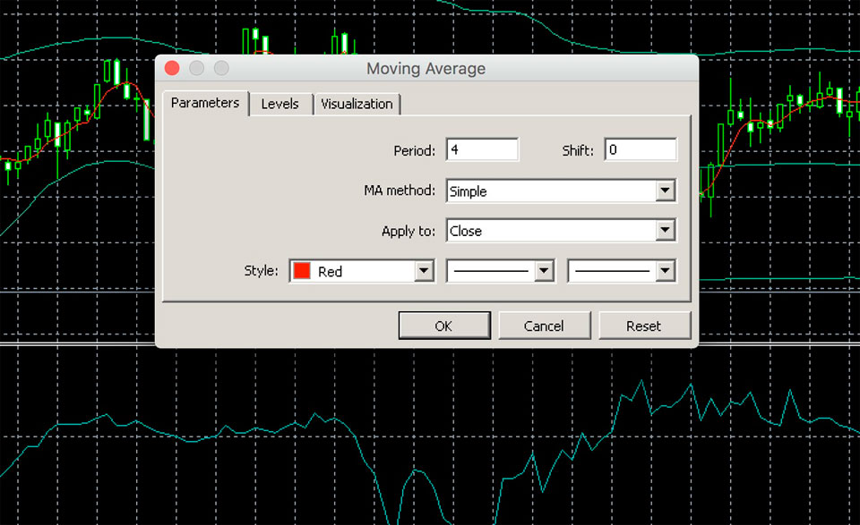 2. Simple Moving Average: период — 4, применяется к Close;