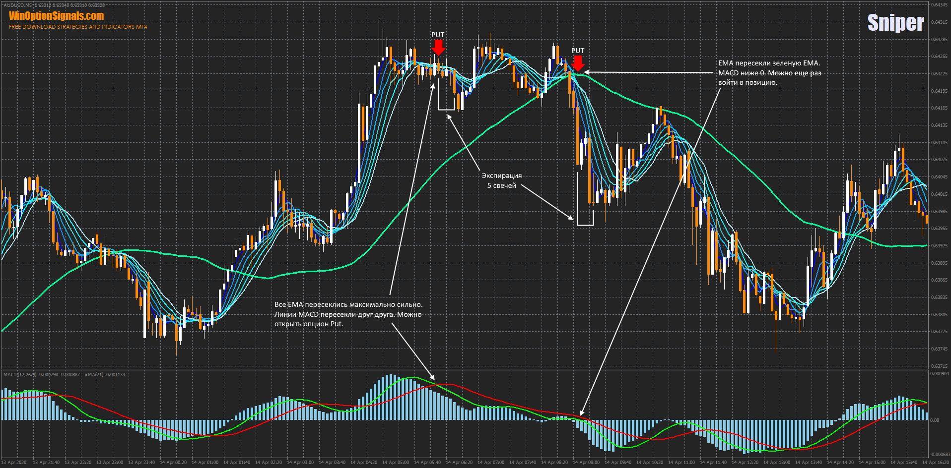 Примеры торговли с помощью стратегии для бинарных опционов Sniper