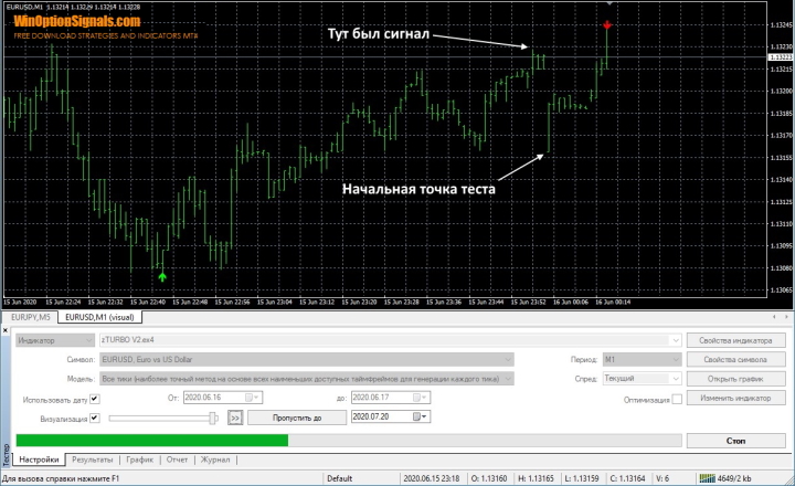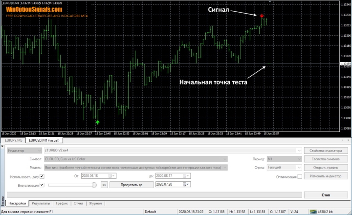 Также особого внимания в стратегии Trend Lock System v1 заслуживает сигнальный индикатор zTURBO V2, который является классическим «перерисовывающим» индикатором. Удостоверится в этом можно без проблем, «прогнав» индикатор в тестере: