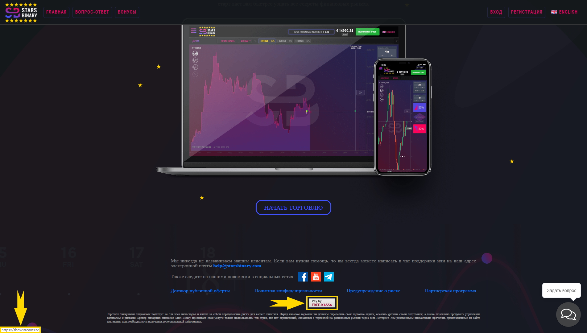 Какое отношение этот сайт имеет к брокеру Старсбинари, не понятно, возможно просто разработчики сайта StarsBinary com просто забыли сменить ссылку. Поэтому наш совет – проявлять осторожность, находясь на сайте брокера Старсбинари.
