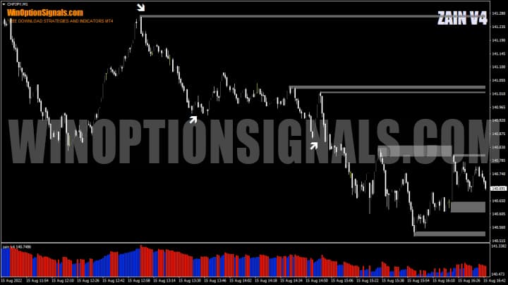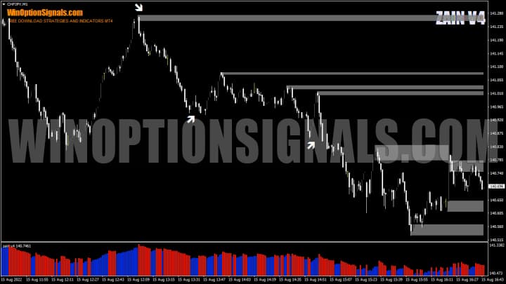 - Характеристики индикатора для бинарных опционов ZAIN V4;